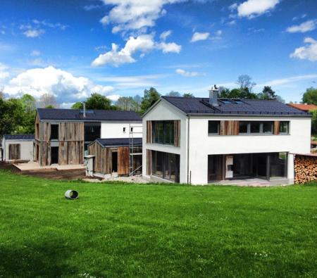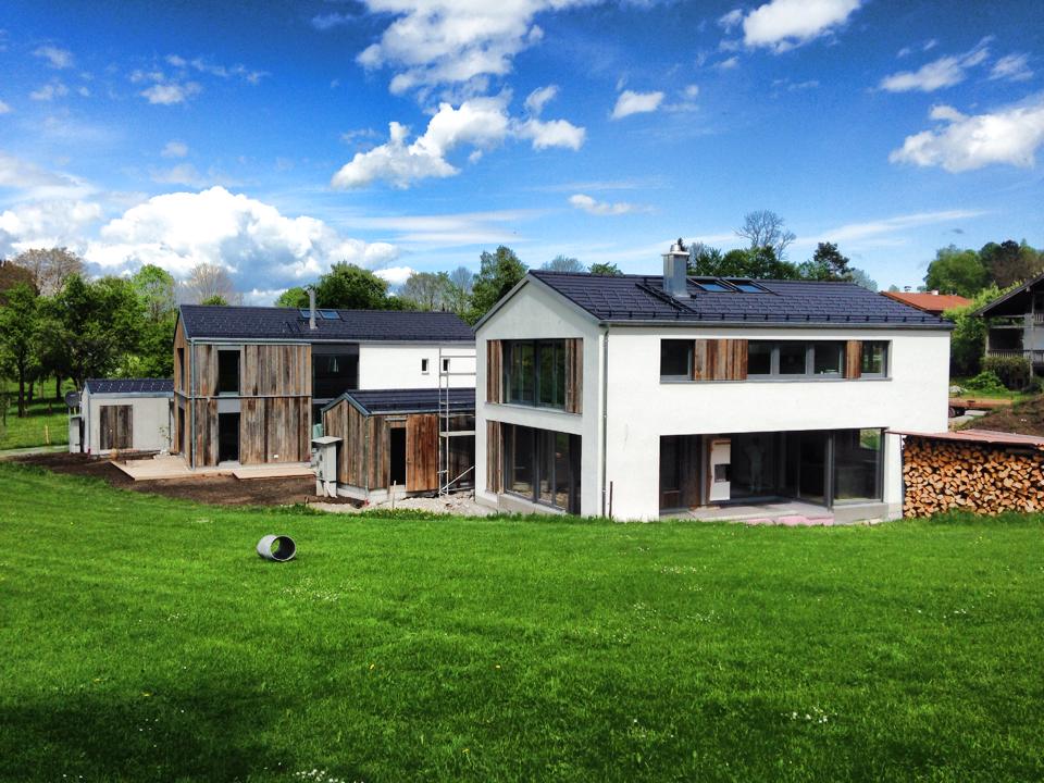 Neubau von Einfamilienhäusern in Grainbach am Samerberg. Die Aufgabe war, modernes Wohnen in ländlicher Umgebung stilvoll zu realisieren.