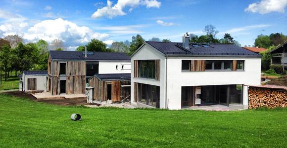 Neubau von Einfamilienhäusern in Grainbach am Samerberg. Die Aufgabe war, modernes Wohnen in ländlicher Umgebung stilvoll zu realisieren.